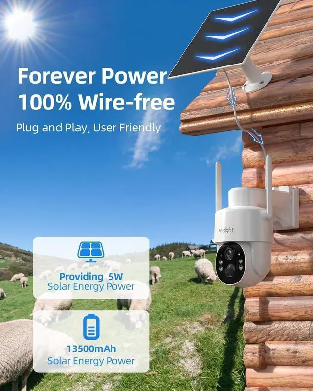 Data plans can be used at $ 15.9 /unlimited per month (other data plans available) within the "Yoosee" APP. With subscribe the date plans we gift a lifetime Free 7-day Rolling Cloud Storage (Single event logging 8S), or use your own SD card (up to 256GB). ^^ Non-Stop Solar Powered & True WirelessThis wireless camera no internet needed is equipped with a 13500mAh rechargeable battery and 5W solar panel, so you don't need to worry about it running out of power. it guarantees a constant power supply, eliminating the hassle of frequent takedowns and charging.