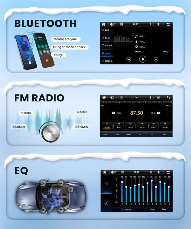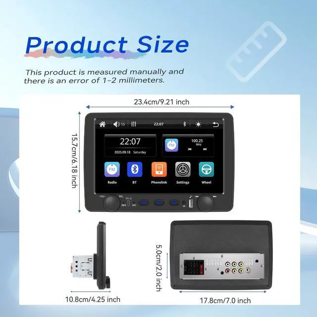 Bluetooth Hands-Free & FM Radio: Pair with your smartphone via Bluetooth for crystal-clear handsfree calls, eliminating distractions during driving. Equipped with high-quality digital FM radio, supporting 18 preset stations and automatic channel searcheasily access real-time road conditions, news, weather forecasts, and music, keeping your commute or road trip entertaining and informed. ^^ Wide Vehicle Compatibility & Installation Notes: Designed to fit for 1 din car, Please verify original car center console shape, connector, and sound system specs before purchase. Ensure your dashboard opening size matches; an additional dash kit may be required for a perfect fit. Built-in EQ (equalizer) lets you customize audio settings for optimal sound quality.