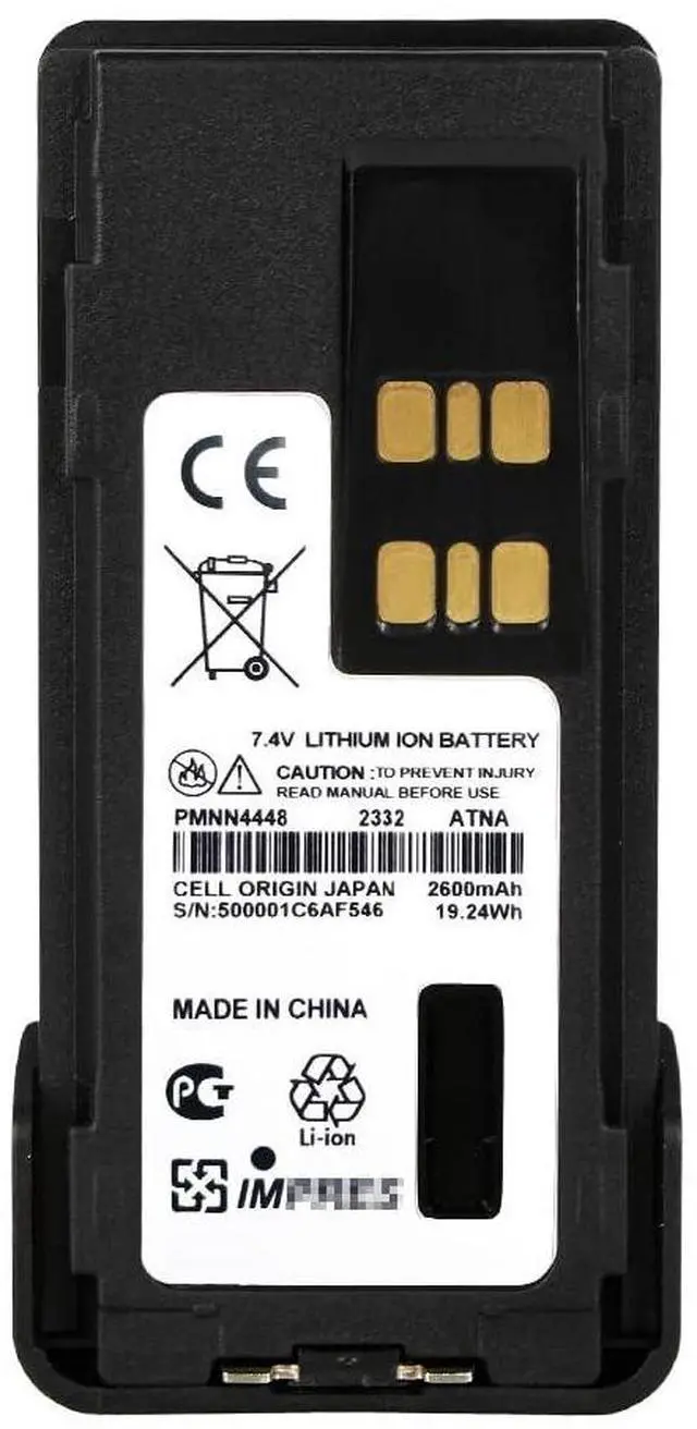This replacement battery for PMNN4491D PMNN4448 PMNN4448A PMNN4448B PMNN4448AR has a capacity of 2600mAh, Li-ion Polymer material, 7.4V Voltage and With impres 2 function. ^^ About Our BatteryThe latest advanced technology provides additional stable battery life and battery health. Our batteries are all new and the size is the same as your original battery. The high-quality designed pmnn4448ar battery case, which provides strong protection to the battery and smart chip. Over temperature protection, over charging protection, over load protection, and short circuit protection were all provided by built-in A-class battery cells and ic chips.