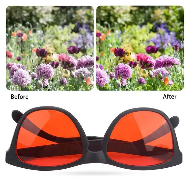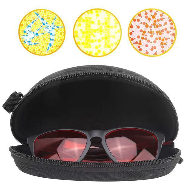 There is a special coating on the lens that can filter specific wavelengths of light, allowing colorblind people to improve color resolution. ^^ Fashionable appearance, colorblind glasses look no different from ordinary sunglasses. ^^ You can see a more vivid scene, wearing colorblind sunglasses, you can feel the effect of color enhancement. ^^ Effectively improve the patient's color distinguish ability and improve the color resolution. ^^ Additional luminosity, suitable for people who suffer from both color blindness and myopia.