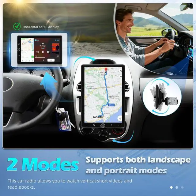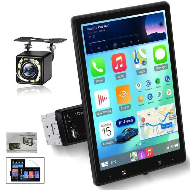 [ 10.4 inch Vertical Touchscreen & Single Din Stereo]: The1280800 single din car radio with manual vertical/horizontal rotationmanual switching, you can watch vertical short videos in full screen and view photos. The 2.5D screen offers a smooth touch experience and wide viewing angles, while the 178mm50mm installation size ensures compatibility with most single din dash openings ^^ [Wireless