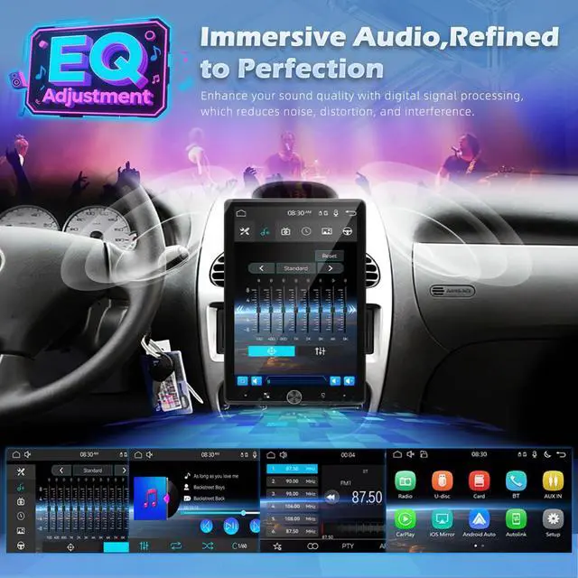 CarPlay/Android Auto+Bluetooth]: Seamlessly connects to iOS/Android phones via wireless CarPlay/Android Auto, with auto-reconnect functionality for quick pairing after initial setup. Bluetooth delivers low-latency hands-free calls and music streaming, synchronizing contacts and call logs automatically. Built-in voice assistant on mobile phone lets you make calls, navigate, and play music hands-free ^^ [EQ +