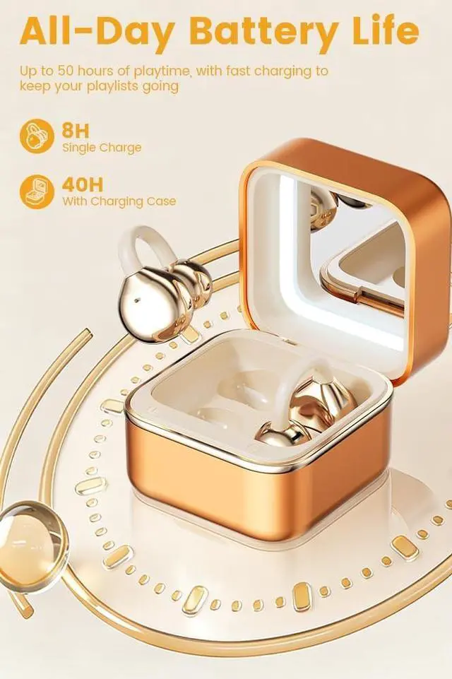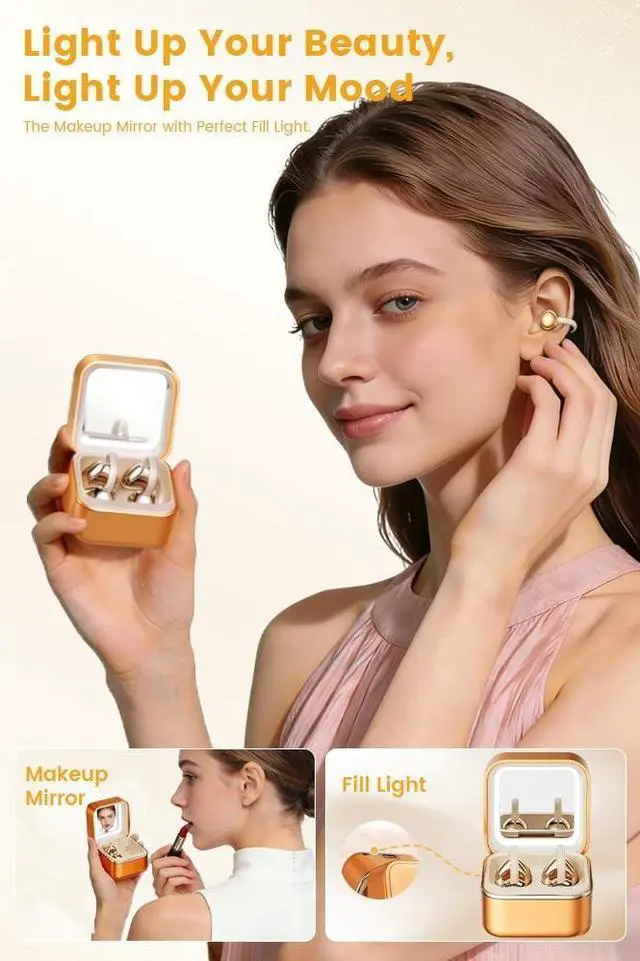 Audio Companion: This isnt just earbudsits sleek charging case doubles as a pocket vanity studio, complete with a built-in mirror and adjustable LED light. Touch up makeup, check your look for video calls, or snap selfies while streaming music/podcastsperfect for on-the-go style. ^^ Built-In Mirror +