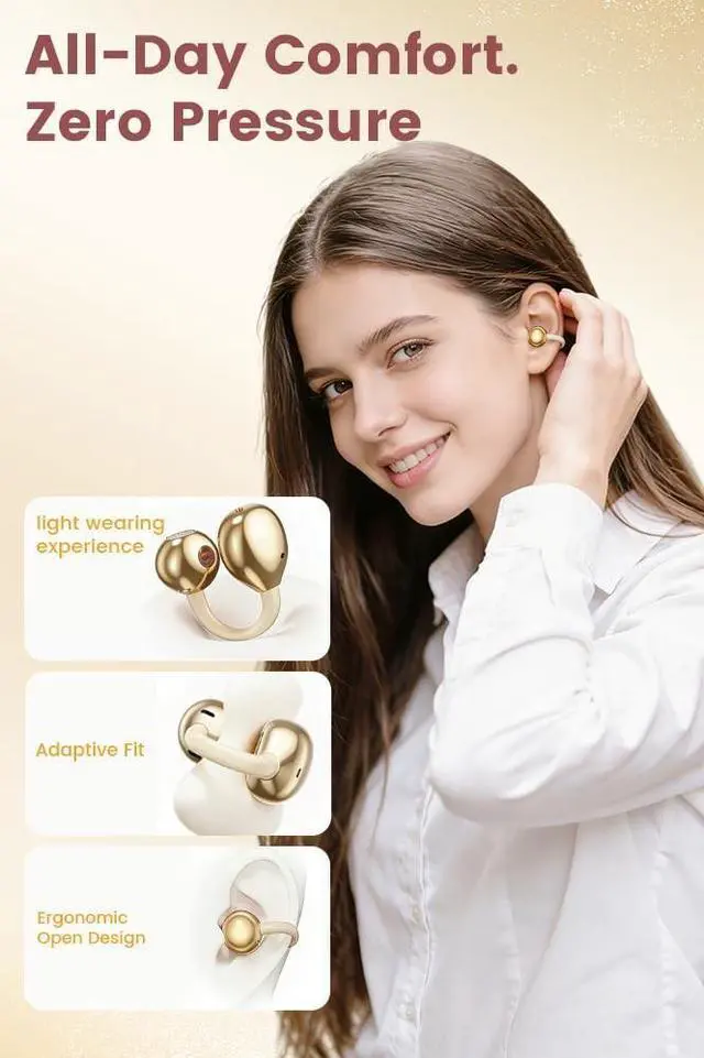 Comfort & Awareness: Gentle, secure clip-on fit rests around (not in) your earszero pressure or fatigue, even after hours. Open-ear design keeps you aware of surroundings (traffic, coworkers) while enjoying audioideal for work, walks, or home relaxation. ^^ Bluetooth 6.0 +
