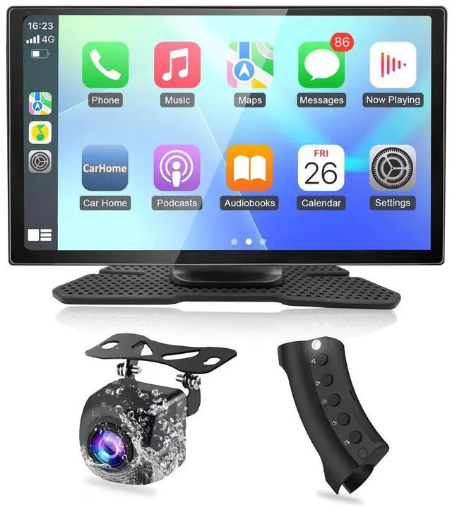 Easy to install: carplay screen for car than Most single or double din car stereos are somewhat difficult to install, but all that is required is to plug the power cord into the cigarette lighter. Also, the KP006 is supplied with a bracket that can be glued directly to the front of your car, and you can secure it with this bracket. ^^ 1080P Dash Cam&Back up camera portable carplay screen with front and rear 1080P cameras provides detailed front-view looped video for peace of mind while driving. It support 170Wide Vision and night vision. ^^ High Quality enjoyment & Get Excellent Customer ServiceWe have confidence in the quality of our products. If you purchase or use encounter any problems, please feel free to contact our Email! We offer the customer service for you!