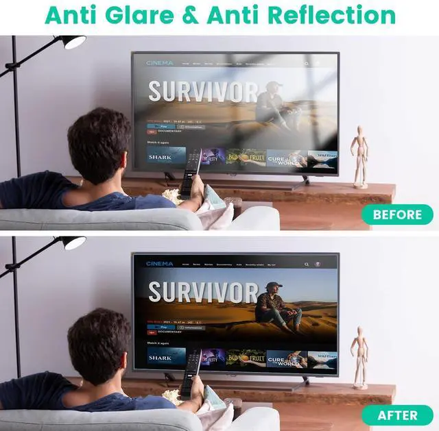 Anti-Glare & Reflection Control The matte surface of this 32 inch anti glare screen protector cuts ambient light reflections for a clear, sharp image even in bright conditions. It also resists dust and smudges for low-maintenance clarity