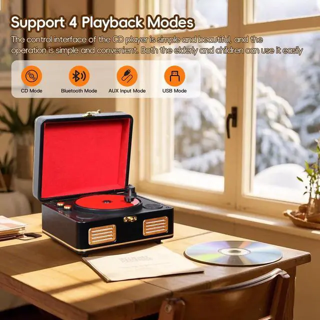 All-in-One Multimedia Player: Supports CD/CD-R/CD-RW/MP3/WMA/WAV, Bluetooth Receive, USB Drive, AUX IN & AUX OUT ^^ Stable Bluetooth 5.0 Connection, Easily Pair with Phones/Tablets/Laptops, Stream Music Wirelessly ^^ Dual AUX Ports (IN/OUT), AUX IN Connect to MP3/PC, AUX OUT Connect to Active Speakers/Amplifiers ^^ User-Friendly Design, Knob & Remote Control, Compact Size, TYPE-C Charging, Safe for Kids & Adults
