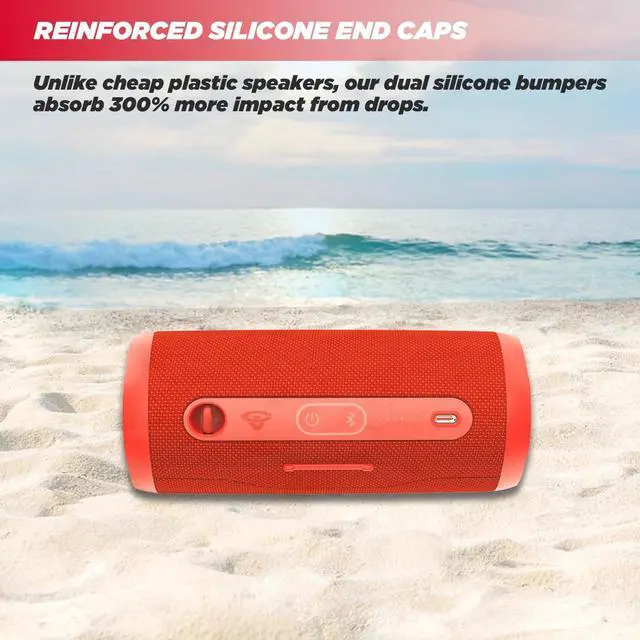 Durability Meets Style: Engineered with water-resistant protection and rugged construction, this speaker thrives at pool parties, camping trips, or sudden rain showers - its striking red housing maintaining both premium aesthetics and professional performance in any environment. ^^ Ultra-Portable Powerhouse for