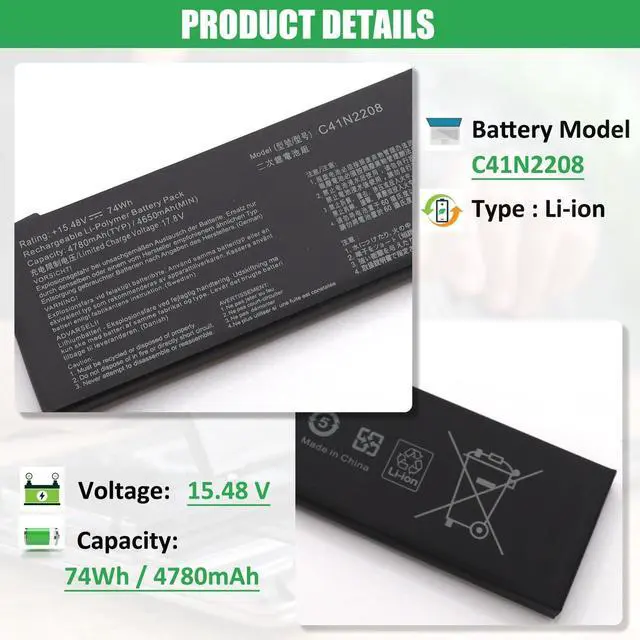 COMPATIBLE PART NUMBER: Battery C41N2208 ^^
