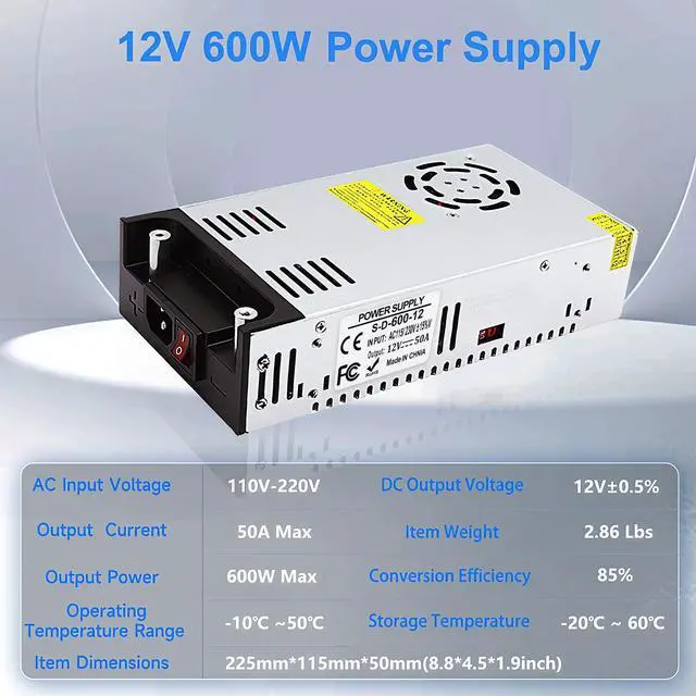 Match Power Appropriately: If the input voltage is 110V, it is recommended to select a switching power supply with 1.4 times the rated power. If the input voltage is 220V, it is suggested to choose one with 1.2 times the rated power. 3.