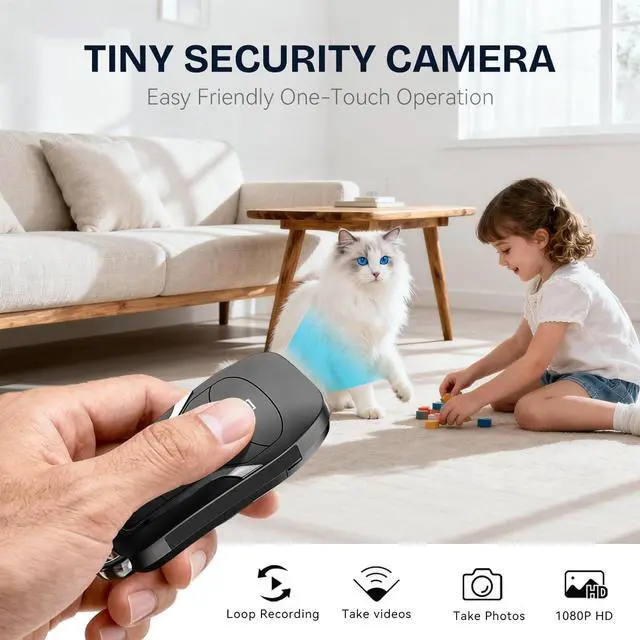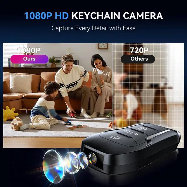 64G 1080P HD Nanny Cam for Home Security, Long Battery Key Fob Camera, Rechargeable Car Key Camera with Loop Recording, Portable Security Camera for ourdoor indoor, Easy to Use & Carry