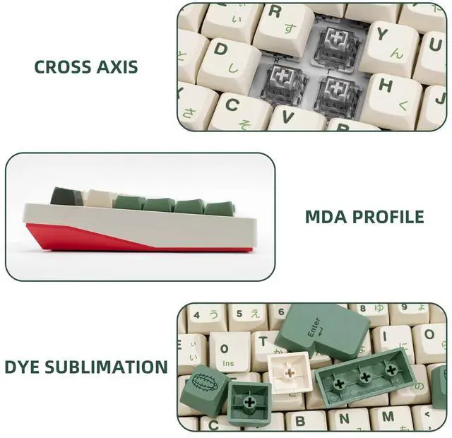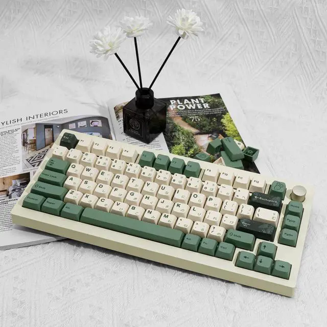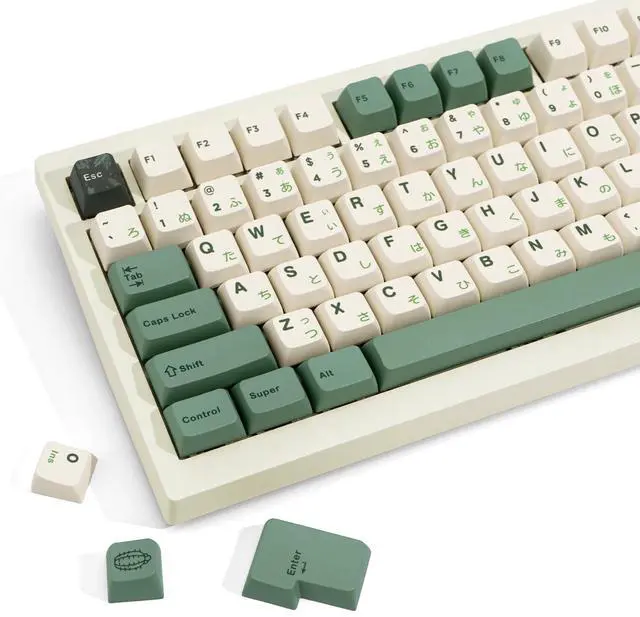 Exquisite AppearanceBotanical garden themed keycaps with a lovely pattern in beige and green for a springtime look. Using this green Japanese keycap may remind you of the good times of outdoor picnics in spring! ^^ High QualityThe advantage of PBT keycaps is that it has a slight layer of frosted particles on the surface, which allows your fingers to fit the keycaps better. These high quality keycaps have a matte texture and grease-resistant coating that is very wear-resistant, with heat-sublimation technology to ensure that the patterns on the keycaps will not fade. ^^ MDA Profile KeycapsMDA keycaps have a slightly rounded shape, which visually will make your keyboard look more adorable, and at the same time the contact area between your fingers and the keycaps is larger, with a flatter surface that is less likely to be accidentally touched, making it perfect for typing.