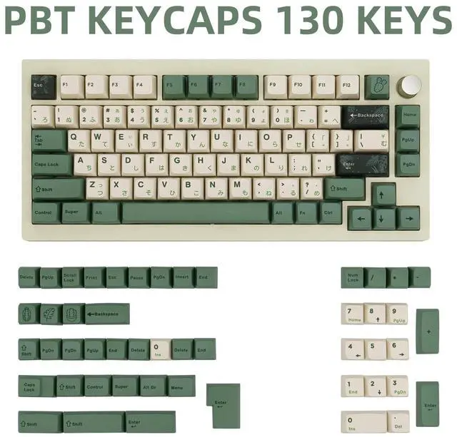 ^^ Japanese KeycapsThis set of Botanical Garden keycaps are designed in Japanese, if you are a fan of Japanese, don't miss this set of Japanese keycaps, these lovely Japanese keycaps will heal your mood well when installed on your keyboard. ^^ ANSI/ISO Layout130 Keys PBT MDA profile keycaps with US layout, suitable for most of the mechanical keyboards with matching rows, it is a good choice for you to create a unique mechanical keyboard.