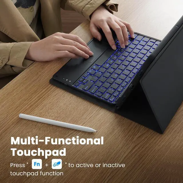 (NOTE: Please charge the keyboard for about 2-3 hours before first use). Automatically sleep or wake when the case is closed or opened, which preserves battery life, reducing energy consumption and extending device longevity. ^^ Wireless Keyboard with Multiple Viewing Angles With this sleek and stylish design, our small keyboard case can turn your pad into a laptop in less than a second. You can change your pad from different viewing angles to landscape mode to provide the most comfortable viewing position. Good for working, writing, or watching videos.