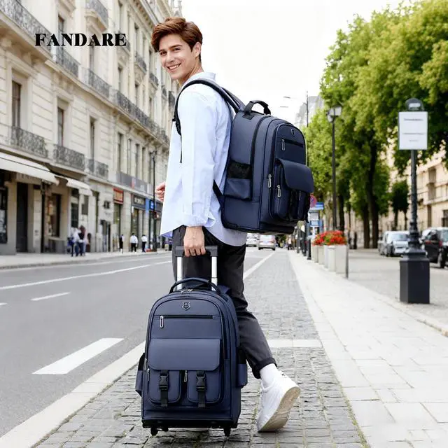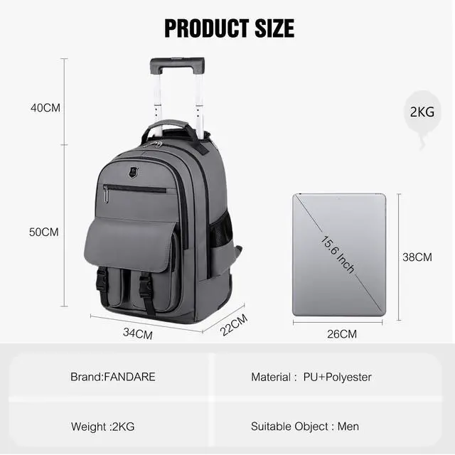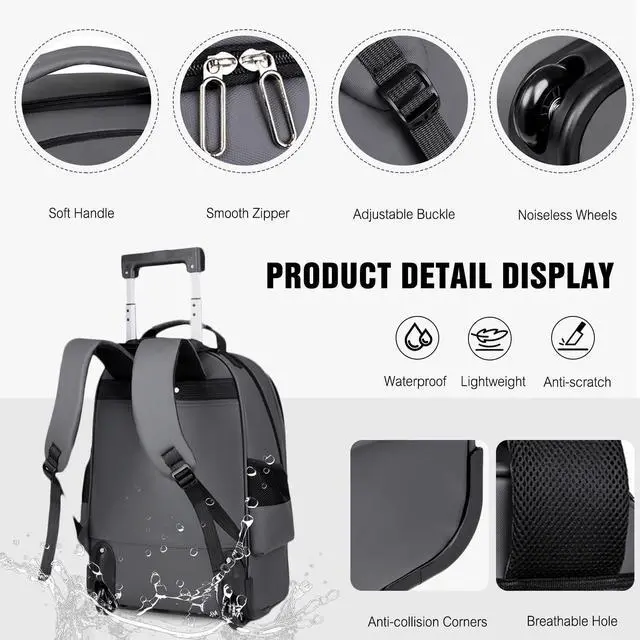 ^^ Convertible 2-in-1 Design: Switch seamlessly between rolling this backpack on smooth floors (via its sturdy telescopic handle and durable wheels) or carrying it as a padded backpack for stairs, crowded streets, or uneven terrain. This roller backpack features two padded shoulder straps that can be tucked away when not in use. Breathable shoulder straps and back help reduce stress. ^^ Travel-friendly Design - Resembling a suitcase, this rolling laptop backpack easily fits into most overhead compartments on airlines and meets the size requirements for carry-on luggage. Ideal for college students hauling textbooks and laptops, commuters navigating city routes, or travelers on short business tripsthis flexibility cuts down on fatigue during busy daily routines and on-the-go lifestyles. ^^
