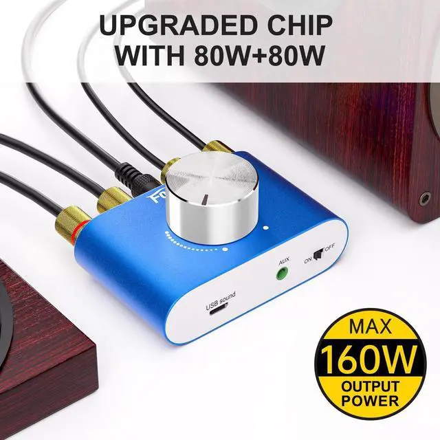 Impedance: 4~8 Ohm. ^^ Truly Amplified Your Music Experience-- This little powerhouse delivers crystal-clear stereo sound that belies its size. The 80W2 channels fill your space with rich, high-fidelity tunes, effortlessly streaming via Bluetooth from devices or connected through the handy AUX/USB inputs. Dont let its size fool you. It has a high quality feel and sounds wonderful. The small size means you can tuck it right under one monitor, leaving the volume control handy and taking no desk space. ^^ User-friendly 3 Inputs Optional-- With Bluetooth 5.0 / USB / 3.5 mm AUX audio cable input, compatible with most common audio device such as phone, tablet, computer, TV, CD player, etc. Bluetooth 5.0 wireless input achieves faster and more stable transmission, USB input plug and play, no need for any driver. The connectors on the back work with both spliced cables or banana plugs. Equipped with complete accessories, you can enjoy its powerful function at once when you receive it. ^^ Warming NOTES-- This Amplifier is NOT COMPATIBLE a range of products launched by such as Echo, Alexa ect.