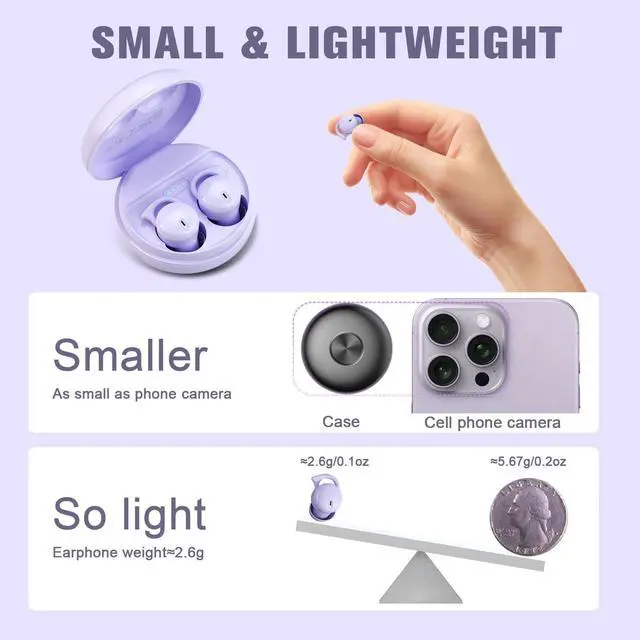 Features: 1, The sleep earbuds is equipped with the latest Bluetooth 5.3 chip, with fast transmission speed and stable connection, providing you with a low-latency listening experience. 2, Using Graphene diaphragm unit to bring high-fidelity sound quality, better high-frequency extension performance, clear and natural sound, making the sound more powerful and powerful. 3, The frontal effect is very invisible. You can hardly notice his presence. If displayed from the side, it is very small and can meet the needs of some special occasions. 4, It really no burden to wear for a long time, even children can wear it easily, so comfortable that forget sleep earbuds exists. 5, One Step Connection - This smallest invisible earbuds are super easy to connect. Open the cover and the wireless earphones will automatically turn on and pair with each other.