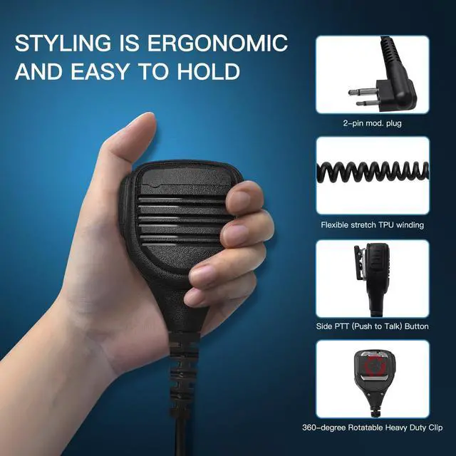 Operate: Big PTT Push-to-talk button360-degree Rotatable Heavy Duty ClipTPU Stretchable CableDimension: Mic/PTT