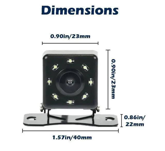This is a rear camera designed to assist drivers when backing up their vehicles. It can be used in various types of vehicles, such as cars, trucks, RVs, and more. 8 LED super bright lights illuminates the images when night, and greatly enhances night vision with sharp image.Waterproof IP-67 Standard, shockproof & dust-proof level, high performance in all-weather condition. Easy to install, the camera can be installed on the car plate or the back of the car. It's easy and fast to install.