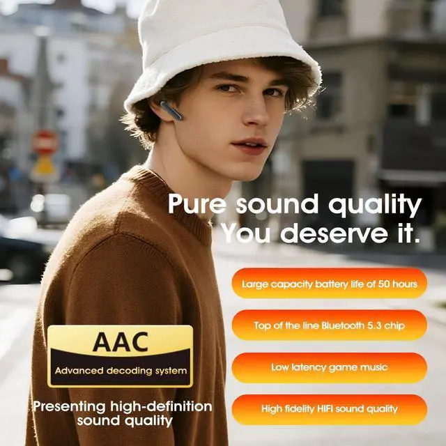 Hybrid Active Noise Cancelling Earbuds Experience silence with these advanced noise cancelling earbuds. Hybrid ANC technology eliminates up to 45dB of ambient noise, while ENC ensures crystal-clear calls. These bluetooth in ear headphones deliver immersive sound whether you're commuting or working. ^^ Bluetooth 5.3 Smart Instant Pairing System Featuring a streamlined pairing process: simply take the wireless earbuds out of the case and they automatically enter pairing mode. This intelligent design ensures your bluetooth earbuds connect reliably without unnecessary battery drain, providing quick access to your audio. ^^ 50-Hour Playtime Battery Life Built for endurance, these noise cancelling wireless earbuds deliver 10 hours of playtime per charge, extending to 50 hours with the portable charging case. Perfect for long trips and daily use, these ear buds noise cancelling bluetooth earbuds keep you powered throughout the week. ^^ Secure Sport Fit & All-Day Comfort Engineered for active lifestyles, these bluetooth in ear headphones include multiple ear tip sizes and secure ear fins. The ergonomic design maintains comfortable, stable fit during workouts and extended wear, making them ideal wireless earbuds for running and sports. ^^ Intuitive Touch Control & Voice Assistant Easily manage your entertainment with responsive touch controls. Adjust volume, skip tracks, answer calls with a simple tap. These noise cancelling earbuds put complete control at your fingertips for seamless daily use.