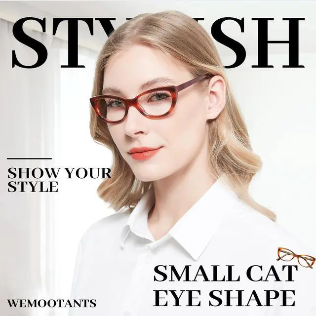 , Lens Width- 48.87 mm( 1.92" ), Bridge Width- 16.14 mm( 0.64" ), Arm straight-line length- 127.32 mm( 5.01" ), Lens Height- 34.23 mm( 1.34" ). Fit small head. ^^ [ Functional package ] WEMOOTANTS women's eyeglasses will arrive with cute accessories - soft cleaning cloth, thick portable bag, key-chain screwdriver to adjust screws on hinges, black string to hang the readers on the chest avoid losing. ^^ WEMOOTANTS Small Fake Cat Eye Eyeglasses Blue Light Blocking Glasses