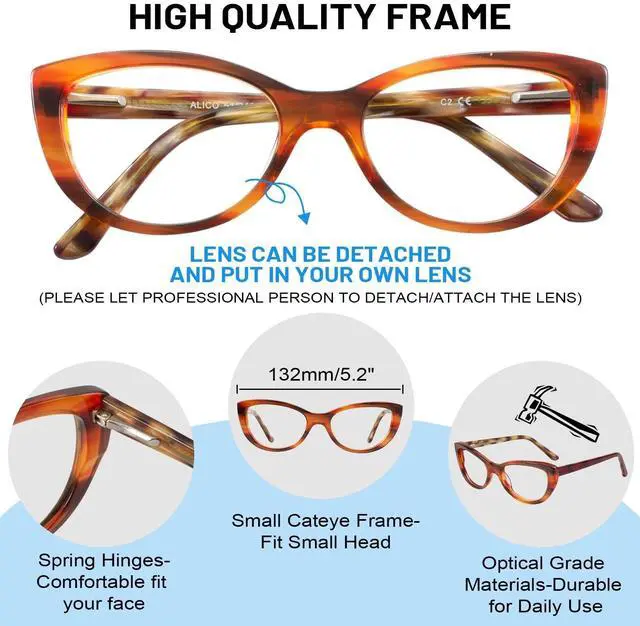 [ Practical blue light glasses ] Our advanced blue light blocking lens effectively filter out harmful blue light emitted by electronic devices ( TV, computer, cell phone). Reduce eye strain and headache when you watch digital screen for long time. You can let the professional person detach the lens and put your own lens in. ^^ [ Sturdy glasses frame] Made by quality materials, our eye glasses withstands daily wear and tear, ensuring your eyeglasses retain their shape and shine over time. Metal arms with thread design combines vintage visual and durablity ^^ [ Size ] Frame Width- 131.77 mm( 5.19" )