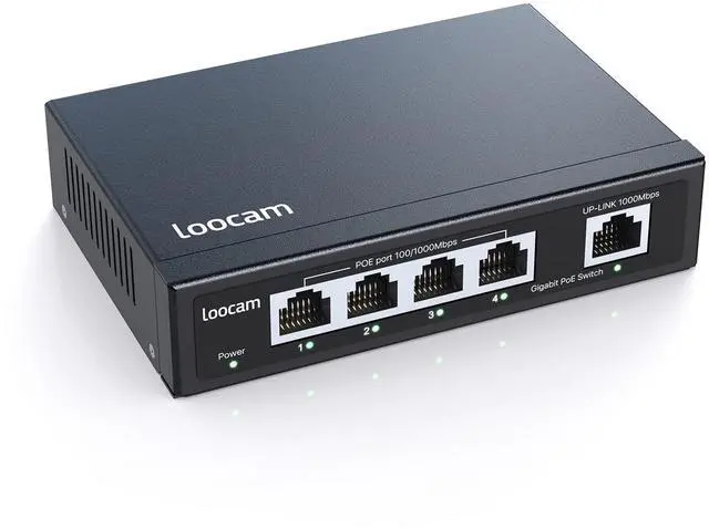 4 Port Gigabit PoE Switch@65WUnmanaged 5 port PoE switch with 4 PoE+ 10/100/1000 Mbps RJ45 port and 1 gigabit Ethernet Uplink port, 4 PoE+ ports providing up to 30W per port, total PoE power budget 65W (external power supply included) ^^ Power over Ethernet, Plug and PlayCompliant with IEEE 802.3 af/at PoE standard, this unmanaged poe switch 4 port can automatically detect and identify PD devices and provide them with power and data. The small gigabit PoE+ switch can only transmit data and cannot power non-poe devices, so the connected non-poe device needs to be powered separately.