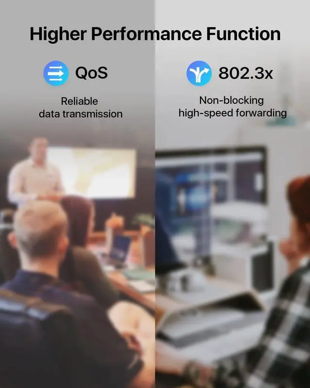Plug and play, easy setup with no software configuration required. ^^ Short-circuit ProtectionEquipped with professional poe chip, the PoE network switch can intelligently detect the data exchange between the poe port and the terminal device. When an abnormality is detected, it will automatically restart and return to normal without affecting other ports, reducing maintenance costs. ^^ 4KV Lightning ProtectionPoE switch features professional 4K lightning surge protection, which helps prevent sudden surges and lightning strikes from damaging poe switch and connected equipment. ^^ 250 Meters Extend TransmissionAutomatically detect the transmission distance and adjust the transmission rate, extend up to 250m (820ft) data and power PoE transmission range (Speed will drop to 10 Mbps).