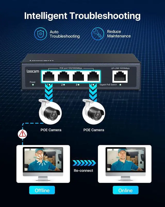 For better results over long distances transmission, use cat5e cables or above. ^^ Energy saving design compliant with IEEE 802.3 azSupport IEEE 802.3X flow control, ensuring stable, reliable, and efficient data transmission. ^^ Fanless Design, Wide ApplicationDurable metal housing with low power consumption fanless design to ensure quiet operation. PoE gigabit switch is widely used in scenarios such as PoE IP cameras, wireless access points, IP phones and computer network devices, etc. ^^ After-sales ServiceAll products are rigorously tested before shipment. We provide one-year warranty for the whole product and lifetime technical support.