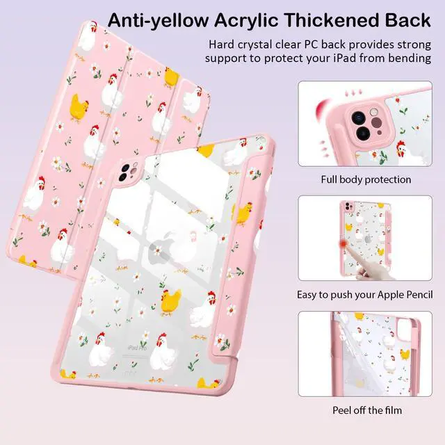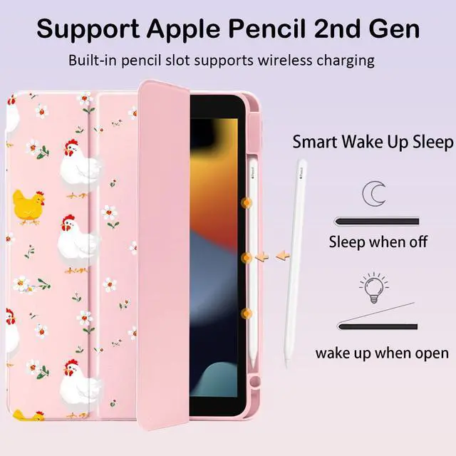 Please Note: The pen holder of this model is located on the left side of the iPad ^^ Well made with PU exterior, microfiber lining and soft silicone frame and clear acrylic back cover, offers full body protection from drops and scratches ^^ Built-in Apple Pencil holder, grab your apple pencil effortlessly whenever you want, keep the apple pencil as safe as your iPad all the time ^^ Cover has flip capability to transform the case into a viewing stand and typing stand. Available in a variety of bright colors and unique pattern ^^ Built-in magnetic strip provides auto sleep / wake function. Precise cutout and design allow easy access to all ports, sensors, speakers, cameras