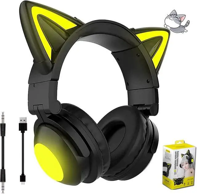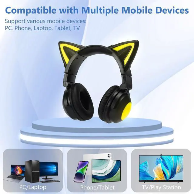 ^^ Portable & Adjustable: Foldable ear pads allow for easy storage, making these headphones perfect for on-the-go use. The wide headbands are adjustable, ensuring a comfortable fit for all head sizes, even for those with larger heads. ^^ Premium Sound Quality & Crystal-Clear Calls: Immerse yourself in a world of high-fidelity surround sound with these cat ear Bluetooth headphones. Enjoy an exceptional audio experience while the built-in microphone cancels out background noise, ensuring crystal-clear calls.