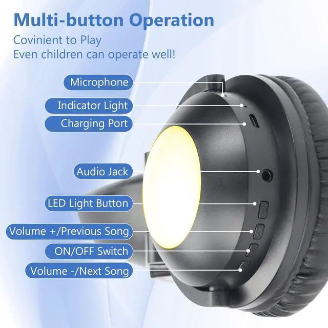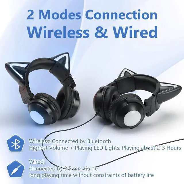Cute Design & Flashing Led Lights: Elevate your style with these cat ear Bluetooth headphones featuring adjustable colorful LED lights. Whether you're traveling or enjoying outdoor activities, the shinning cat ears and earcups will make you look stylish and attractive. Please note that the LED lights and built-in microphone only work in "Bluetooth" mode, not in "wired" mode.