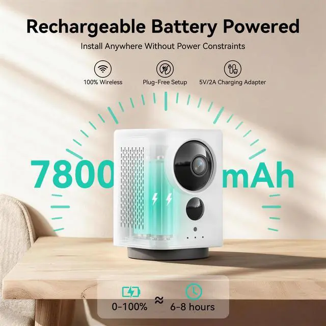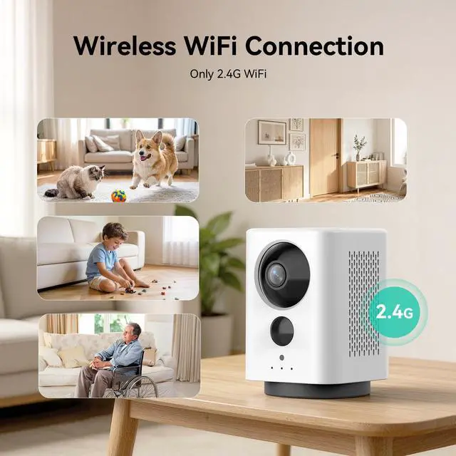 WiFi and Wireless: Indoor security camera is battery-powered with no wiring required, easily movable to any indoor area for protection and real-time monitoring via a mobile app. Ideal for real-time care of infants, pets, and seniors, ensuring home safety.