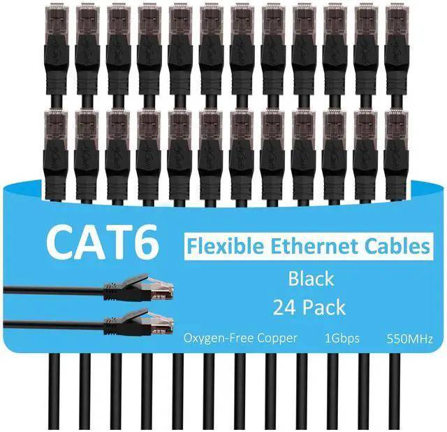 Cat6 Ethernet Cable 10 FT (24-Pack), Snagless Cat 6 Patch Cable, Upgraded Flexible PVC Jacket, Multi-Pack, OFC, 1Gbps, Cat6 Internet Network Cables, UTP, PC, Router, Servers, IT Data Center, Black