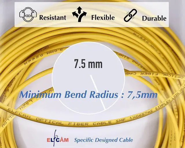 Elfcam - 50m/164.04ft Fiber Optic Cable SC/UPC to SC/UPC Single Mode Simplex OS2 9/125m, Yellow 50 Meter