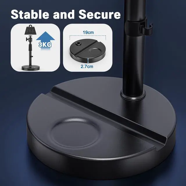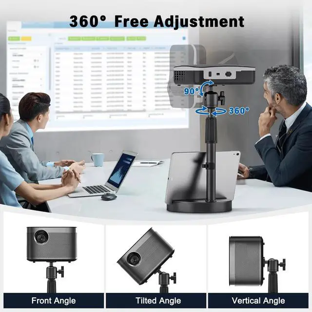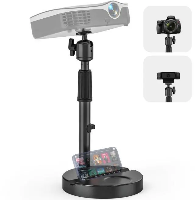 The 1/4-inch ball head at the top enables 360 horizontal rotation and 90 tilt adjustment, allowing you to easily find the optimal viewing angle to meet different height and angle projection requirements. ^^ Efficient Storage The stand base features a specially designed groove for smartphones or tablets, keeping your desk tidy while allowing you to display materials simultaneously during meetings or work. Smartphones can be used for timing or recording, enabling efficient collaboration. Additionally, the adjustable pole includes cable clamps to organize power and data cables, keeping your desk clutter-free. ^^ Portable Installation and Removal Installation and disassembly are extremely convenientsimply insert the telescoping rod into the base holes to secure it in place, making it easy to switch between different usage scenarios.