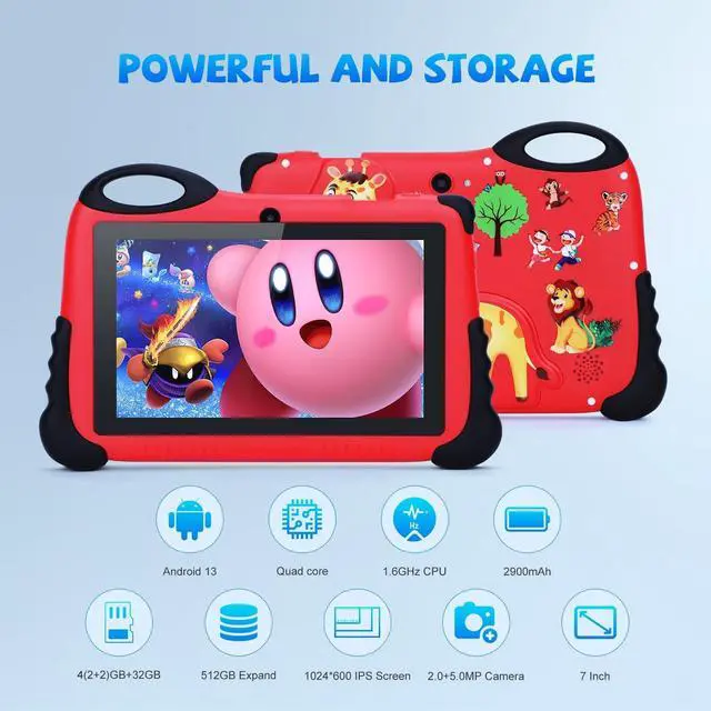 System: An Ideal Gift for Children Aged 3-7Powered by the stable Android 13 system, the tablet runs smoothly without lag. Its user interface is simple and easy to understand, allowing children to easily operate it. The tablet features an adorable cartoon giraffe design with bright and cheerful colors and a cute and appealing shape. It has a built-in 2900mAh battery, providing up to 4 hours of continuous use on a full charge, meeting children's daily learning and entertainment needs. This children's tablet is the perfect gift for children's birthdays, Christmas, and other holidays.