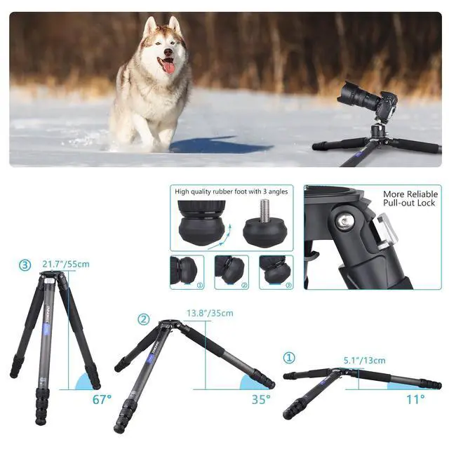 Stable, Durable, and Lightweight Carbon Fiber Tripod. The CT404C Travel Camera Tripod is crafted with high-quality carbon fiber legs and a sturdy aluminum alloy frame. CNC precision machining and anodizing technology ensure smooth operation and enhanced durability. With a maximum load capacity of 88.2 lbs (40 kg), this tripod is ideal for supporting heavy DSLRs, camcorders, and video cameras while remaining lightweight for easy portability (only 5.4 lbs / 2.4 kg). Perfect for professional photographers and videographers on the go!