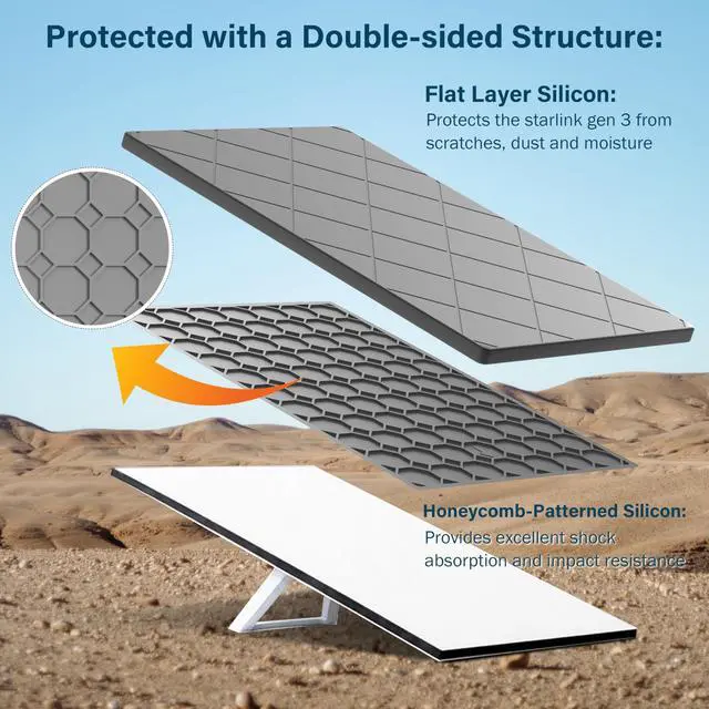 Impact-Resistant Hexagonal Design: The interior of this protective cover features raised hexagonal patterns designed to absorb shock and reduce impact in the event of a fall, helping minimize potential damage to dishes compatible with Starlink Gen 3 and ensuring long-term durability ^^