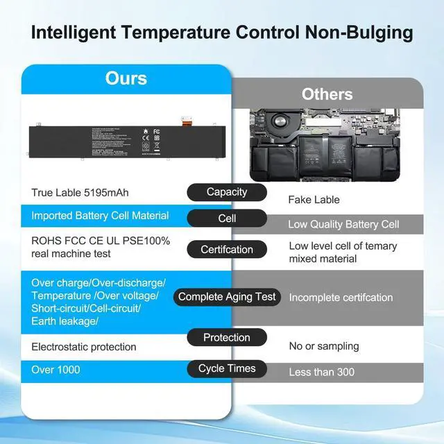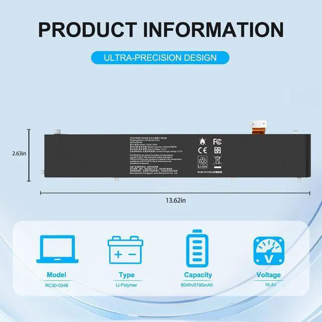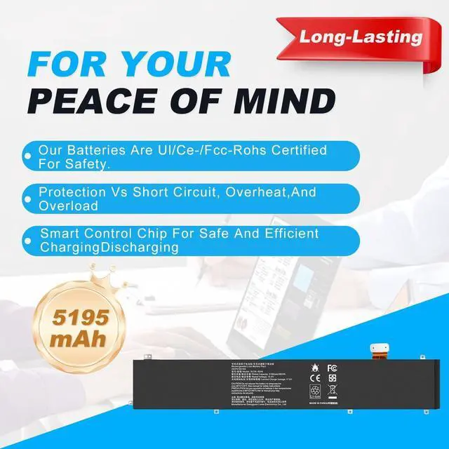 Compatible with Models: Replacement for Razer Blade 15 Advanced 2018 2019 2020 2021 2022 Series, Razer Blade 15 Studio Edition 2019 2020 Series RC30-0248 RZ09-0313 RZ09-0330 RZ09-0330Q RZ09-0238 RZ09-0288 RZ09-0301 RZ09-0367 RZ09-0367x RZ09-0330x RZ09-0301x RZ09-0288x RZ09-0238x RZ09-02386 RZ09-02385 RZ09-02486 RZ09-02887 4ICP4/55/162, Razer Blade 15 2022 RZ09-0421 RZ09-0421NED3 RZ09-0421NEG3-R3U1 ^^ SAFETY & CERTIFICATION Made with high-quality materials and equipped with short-circuit, over-voltage, over-current, and over-discharge protection. Fully tested and compliant with CE FCC RoHS standards to ensure long-term safety and reliability. ^^ WHY CHOOSE US We export worldwide with national certifications. Our professional engineer team provides installation guidance, and every battery comes with a 12-month warranty and reliable after-sales support.