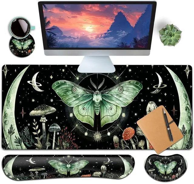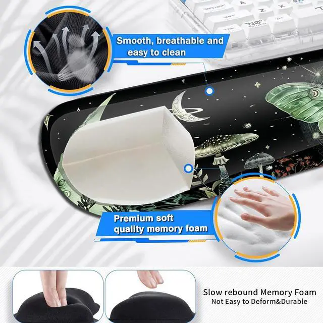 Extended Large SizeThe size of large mouse pad for desk is 31.511. 8inch, which is big enough to fit your full-sized keyboard, mouse, laptop, or other item on the desk, providing more space for professional gaming or office work. Besides, you can also use this extended mouse pad as a desk pad, writing pad, platform protection mat. Keep your desk clean and uncluttered. Ergonomic DesignThe curved and shape design of wrist support set fit perfectly on the wrist. The soft memory foamand filled cushion part will slowly bounce back when your hand leave it, not easy to out of shape.