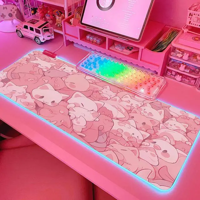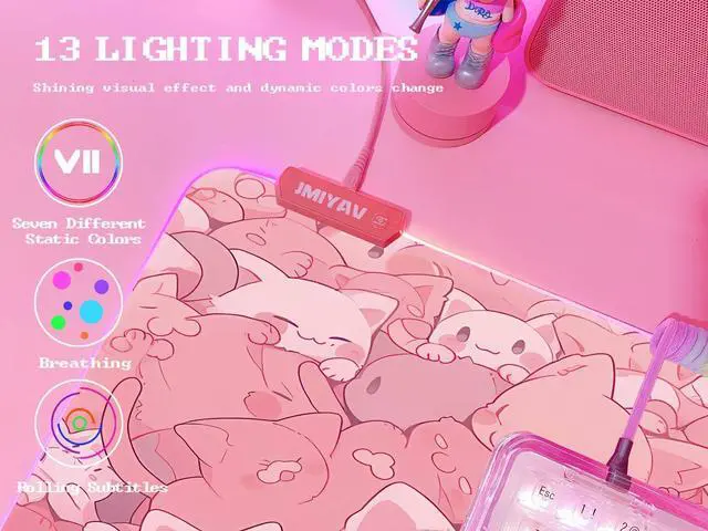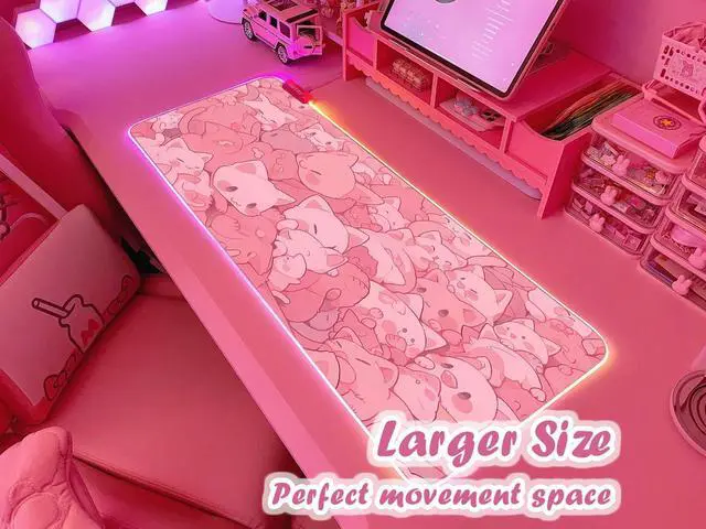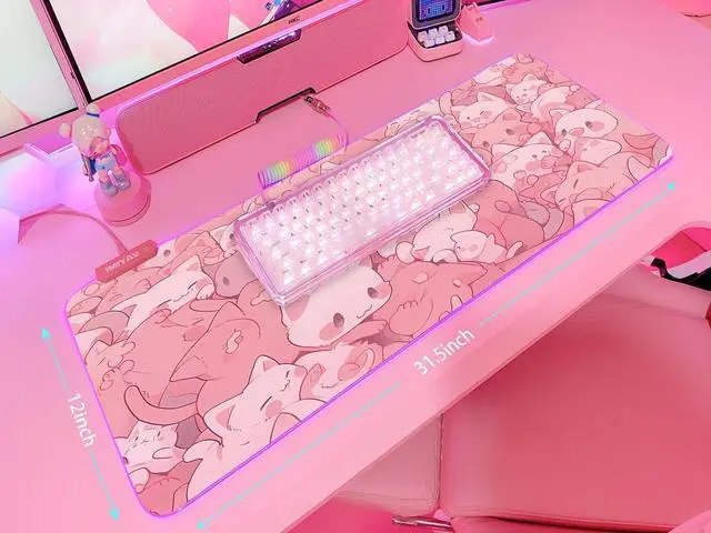JMIYAV Pink RGB Gaming Mouse Pad 31.5x12 Inch PC XL Large Extended Glowing Led Light Up Desk Pad Non-Slip Rubber Base Computer Cute Mousepad Mat Desk Accessories Gaming Setup 487