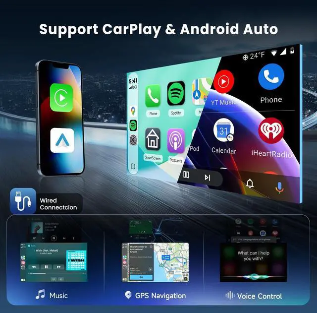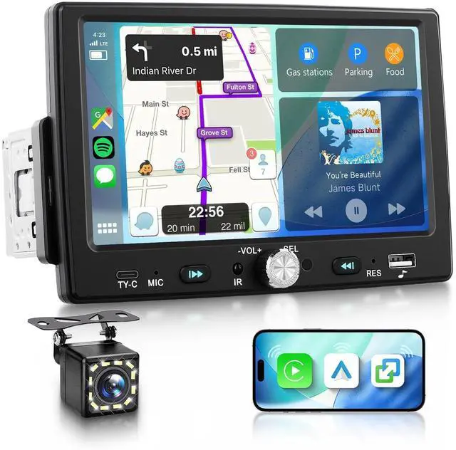 7-inch Touchscreen Single Din Car StereoThis universal single din head unit is equipped with 7-inch touchscreen and volume knob, offering intuitive touch control, easy menu navigation, and a responsive interface for music, navigation, and hands-free calling. Perfect upgrade for your car stereo system, delivering both style and convenience. Please check the dimension before purchasing, feel free to get touch to Upriding if you have any question. ^^ Carplay, Android Auto and Mirror Link ConnectionsThis single din radio supports wired Carplay, Android Auto, and Mirror Link connections, allowing you to easily connect your smartphone for hands-free calling, navigation, music streaming, and app access, enhancing convenience and safety while driving.