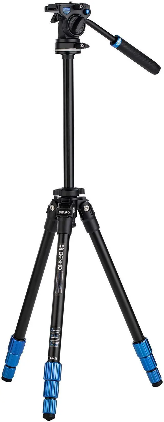 The Slim series of compact value for money tripod kits is completed with the introduction of the Slim video tripod kit. The Benro Slim tripods feature a Slim profile shoulder making the tripod to be more compact when folded. With a maximum weight capacity of 5.5 lb. ( 2.5 kg) this tripod is ideal for shooting video with mirrorless or compact DSLR cameras or camcorders. The Slim tripod legs feature anodized Aluminum twist locks that only require a quick half turn to lock and unlock. A grooved center column prevents twisting when in use and can be reversed for low to the ground shots.