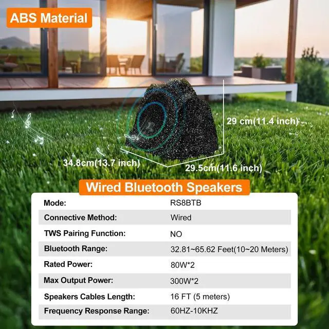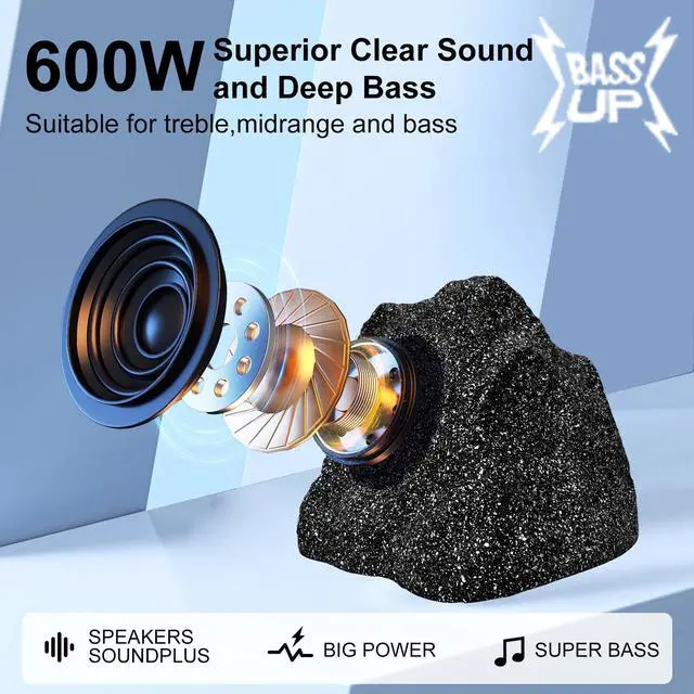 Waterproof Weather Resistant: The rock speakers are made through a five-layer process designed for year-round use, so you dont have to worry about the speakers changing color or changing the sound quality. The outdoor rock speakers suitable for any environment, decoration, or terrain ^^ 360