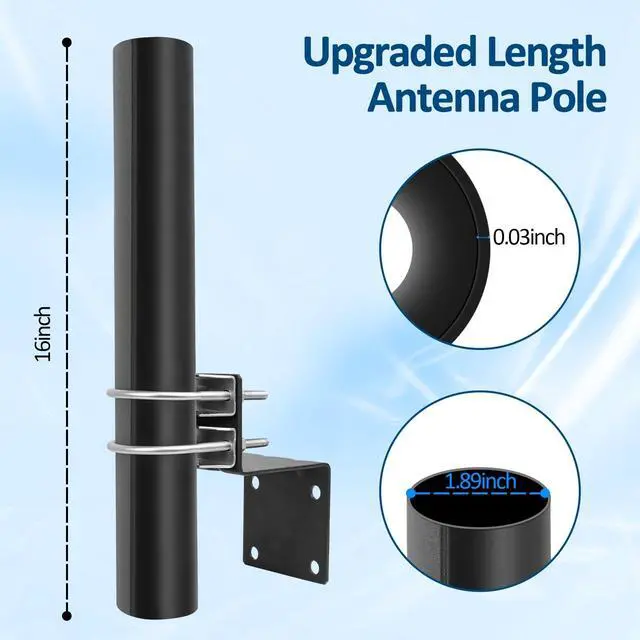 with a length of 16 inches / 40 CM and a rod diameter of 1.8 inches / 4.8 CM, this antenna mounting pole is suitable for install most antenna. ^^
