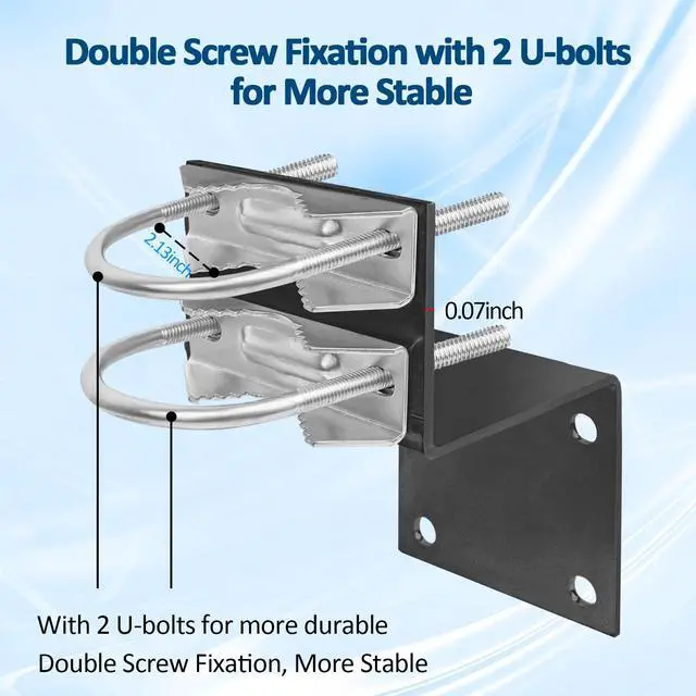 ^^ Comprehensive Package Inclusion: The package includes everything you need for a hassle-free installation a 16-inch mounting pole, U-bolts, pipe bracket, wall mounting bracket, split washers, nuts, and expansion bolts. This comprehensive kit ensures that you have all the necessary components for a convenient setup.