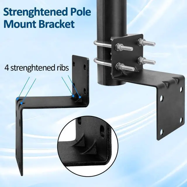 ^^ Versatile Outdoor Application: Designed specifically for outdoor use, this pole mount bracket is suitable for building roofs or walls. Whether you're setting up antennas for improved signal reception or surveillance equipment, our antenna pole provides a versatile solution for various applications.
