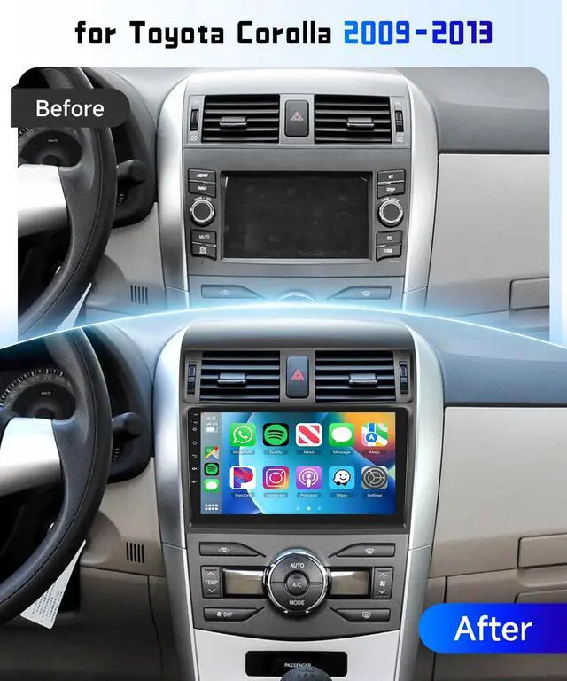 Applicable ModelsThis car radio is compatible with Toyota Corolla 2009 2010 2011 2012 2013 and features a plug-and-play wiring harness.