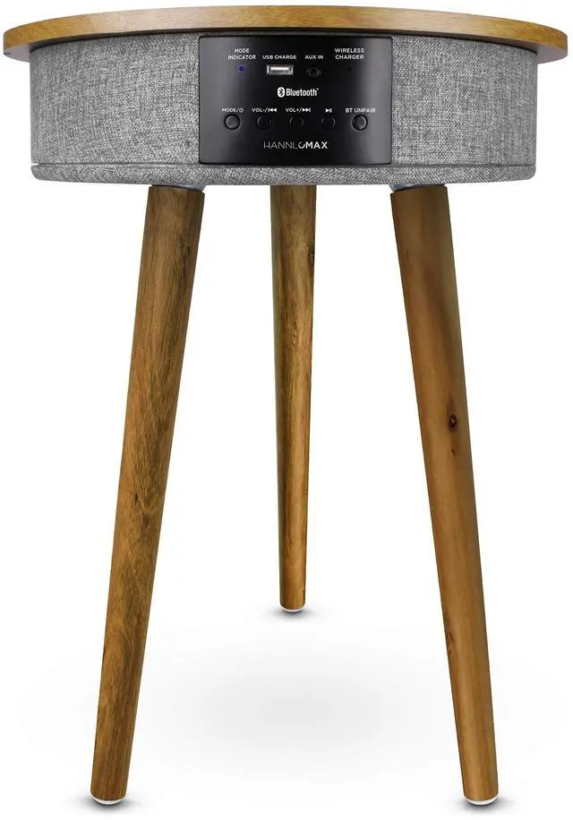 HANNLOMAX HX-201WiL Wooden Table with Wireless Charger, High Power Output Hi-Fi Quality Sound, USB Port for Charging, Bluetooth, Aux-in, AC Power Operation only.